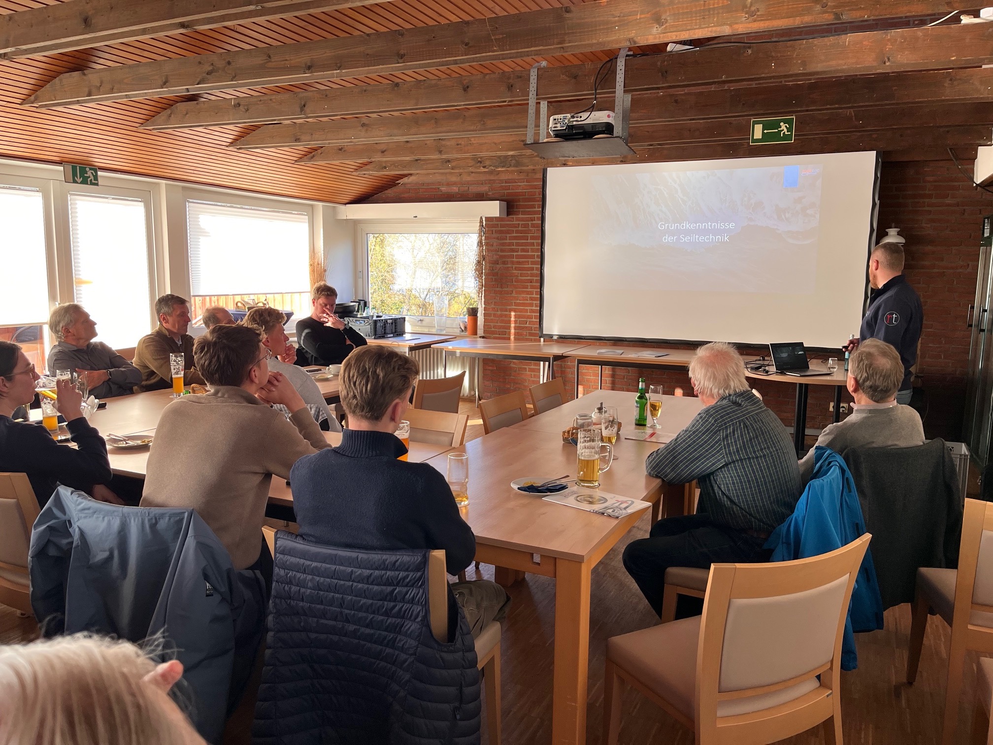 Simon Rothe von der Firma RopeTec aus Bremen informierte die fast 30 anwesenden Seglerinnen und Segler über neueste Technologien der Tauwerk-Technik.