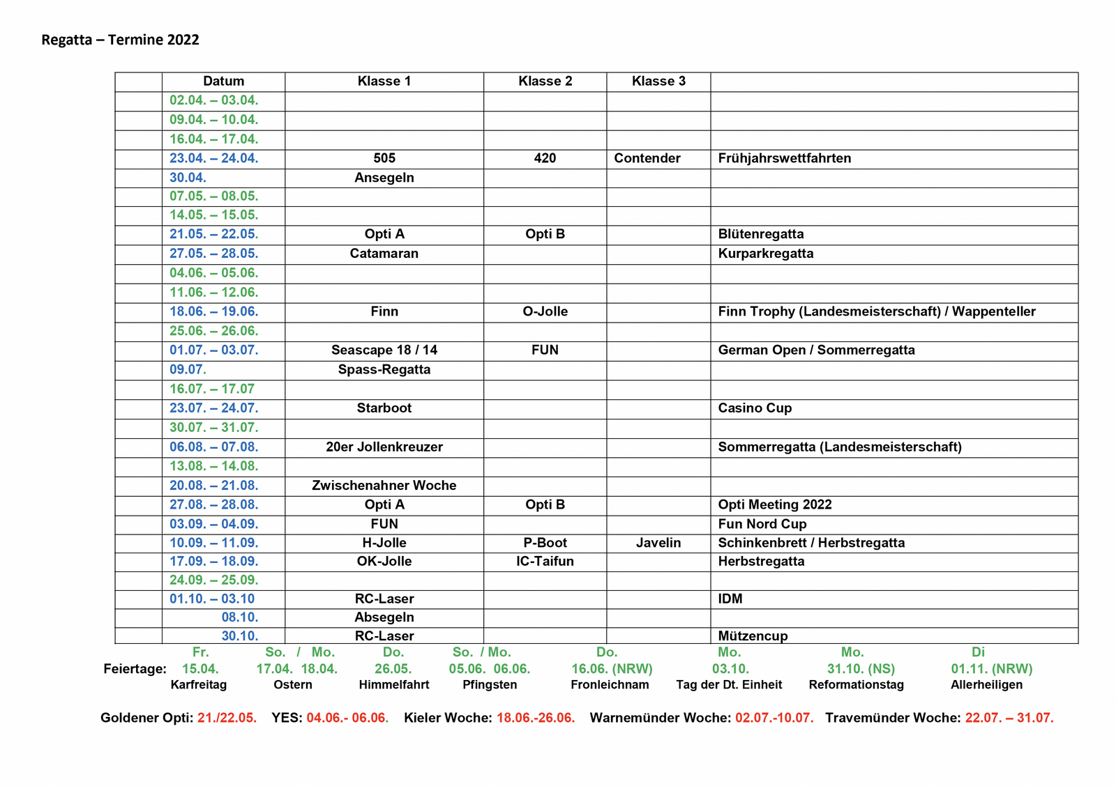 Wettfahrten gesegelt werden. Sonntag hingegen in allen Bootsklassen 4