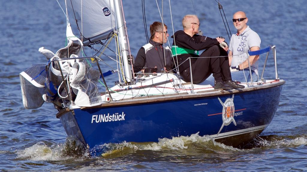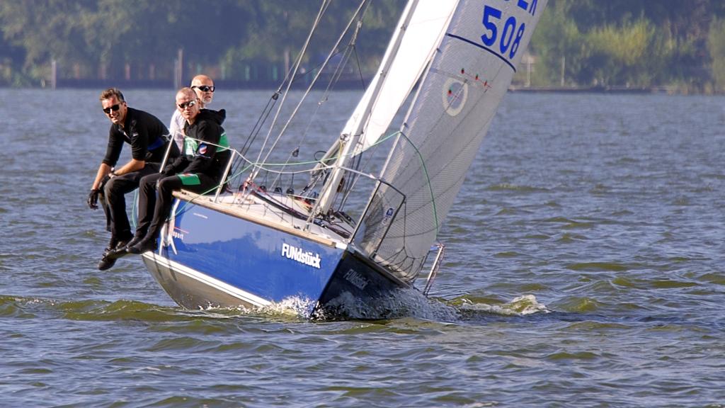 Der Fun-Nordcup, ursprünglich für den Juni geplant, wurde verschoben und nun am 09./10. Oktober ausgesegelt. Am Samstag konnte Wettfahrtleiter Axel Katthagen drei Wettfahrten durchführen, wobei es in der zweiten 3 Disqualifikationen wegen Frühstart gab. Tja, dumm gelaufen für die Frühstarter, am Sonntag kein Wind, keine Wettfahrt, also kein Streicher. Für die Mannen um Jens Glaser gab es dann den Gesamtsieg. Hier das Endergebnis